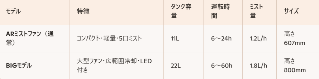 - ミスト量:3段階(P1〜P3)最大約1.8L/h