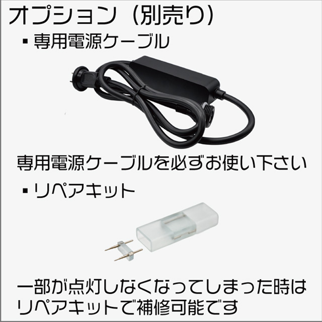 | 片面 | 5m | 15mm×8mm | 120個/m | 37.5W | 二重絶縁構造 50/60Hz兼用 |